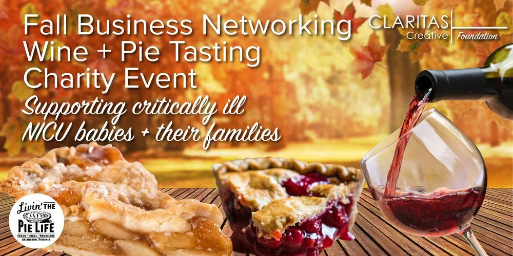 Thank you to those who attended, sponsored and donated to our fall business networking event. Attendees enjoyed wine + pie tastings, appetizers, raffle prizes, and more while supporting local families with critically ill babies in a NICU (Neonatal Intensive Care Unit.) Our event was held at WeWork, a beautiful co-working space in the heart of Crystal City (walking from Crystal City Metro.)